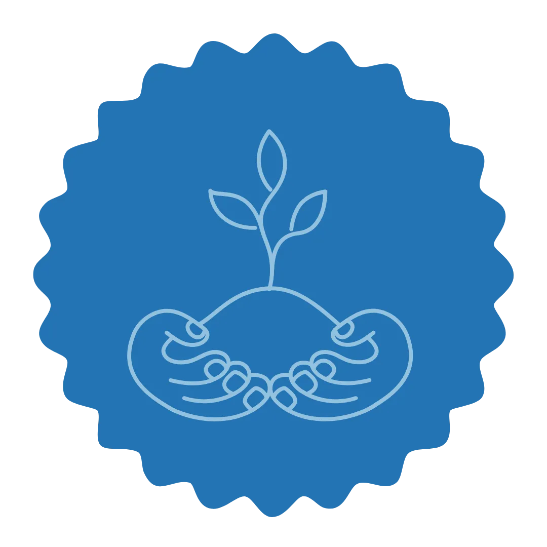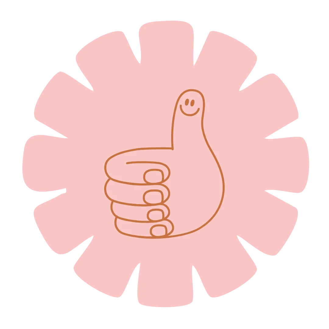 Playful, line-drawn illustration of two hands giving a high-five, in soft pink lines, set within a rust-colored, flower-like shape. This image symbolizes collaboration, encouragement, and success, making it perfect for websites promoting creative hubs or professional workspaces like pottery, jewelry, printmaking, and leatherworking. It highlights a supportive community where big ideas come to life.